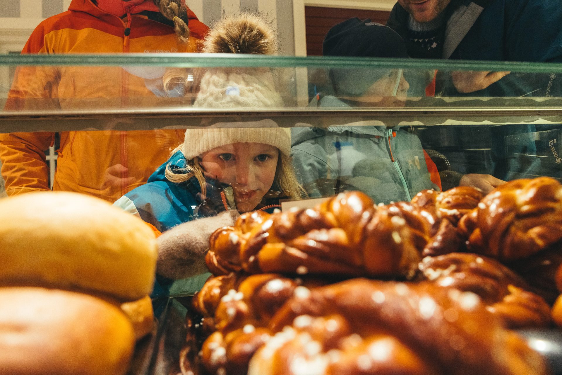 Når små føtter trenger en pust i bakken, er det kort vei til Kong Valemon Isbar – like ved Iskatedralen. Her kan dere ta en helt egen type rast: varme og kalde drikker servert i glass hugget ut av is.